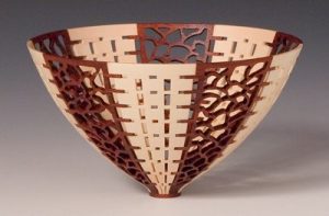 Bill Smith had been involved in segmented woodturning since 1993 and open segmented turning since 1996. He is primarily self-taught having acquired an interest in turning as a hobby. He developed the system he demonstrated for years after seeing a turning made by Yosh Sugiyama, the originator of the open segment concept.