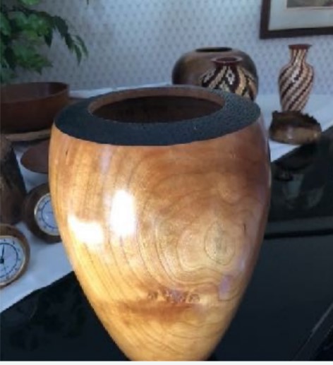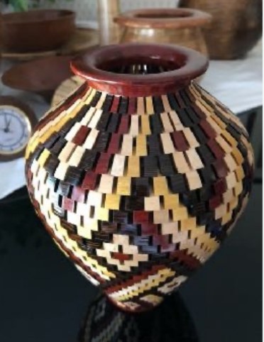 Many years back, Buddy had a short stint at woodturning, but then work and other things got in the way. About five years ago, he picked up where he had left off and has been turning ever since. His early mentors were Liam O’Neill and Dell Stubbs. What impressed me the most was how fast he progressed in his skills in a relatively short time and the diversity of his turning portfolio. I really like his curiosity in trying new and different things like additional ways to embellish a vase, or the real challenges of open space segmented bowls, which you can see in the pictures.