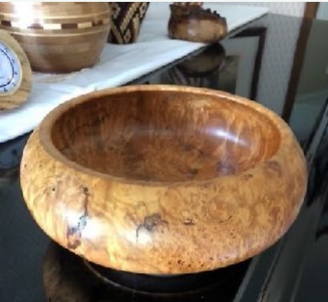 Sometimes simple things work best, like screwing a three-foot section of a 4×4 to a base plate, putting the item to be finished on top of the post and walking around it while applying spray finish out of a can. How about that for a trick and technique? Anywhere you look in the house, you can see turned pieces, and as happens with so many of us, once you run out of space there comes the moment when it is more practical to start selling one’s creations. Buddy has definitely progressed to that stage, and you can visit him in his booth at the upcoming Bluemont Fair.
