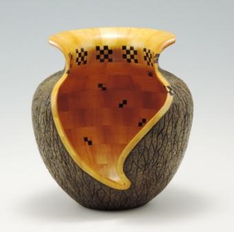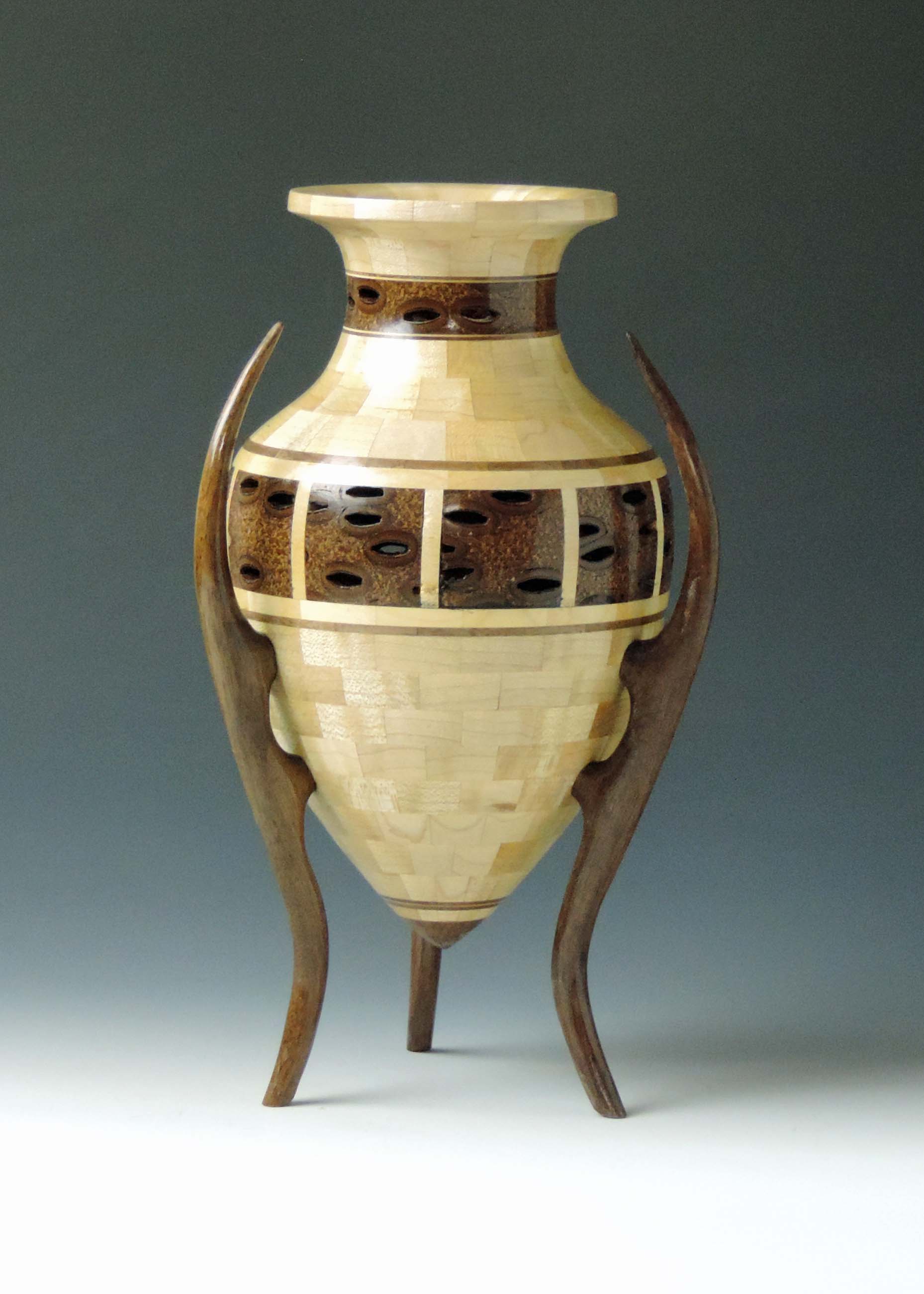 After being focused on flatwork for over 40 years, I was looking for something different to work on, so I decided to try my hand at woodturning. After scraping out a number of bowls, I learned about a local club, the Chicago Woodturners, that had some talented artists including Binh Pho, Dick Sing, and Steve Sinner to name a few. Learning from them and seeing their work got me hooked, and my woodworking focus turned to lathe work. After a club member did a demo on this thing called segmenting in 2006, I immediately became obsessed and purchased all the learning materials I could get my hands on. Malcolm Tibbetts book, Curt Theobalds videos, and the Book on Ray Allen’s work were my primary learning tools for a few years. Then in 2008 I heard about the 1st segmenting symposium being held at Marc Adams School of woodworking and learned more in that weekend than I did in the previous years. I have now been to all seven segmenting symposiums and became active as a board member for our chapter in 2014. I still do some chunk turning and teach a class each year for beginning turners as well as a segmenting class at the Chicago School of Woodworking. Although I enjoy all forms of turning and try every new technique I can at least once, I always gravitate back to segmenting.
