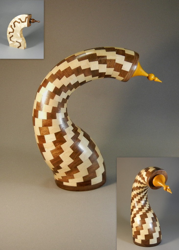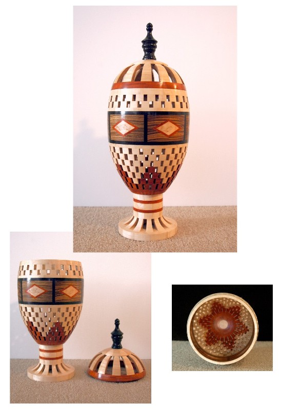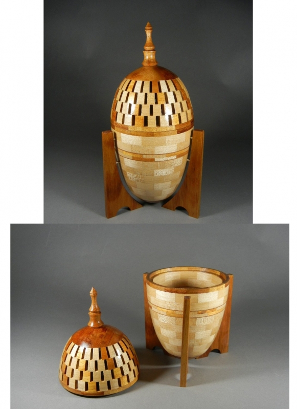 Our basement had no outside entrance and getting heavy tools down there through the inside was awkward. I started turning on a Penn State mini lathe and later a Delta Midi lathe. Like most everyone I started with small things, pens, bottle stoppers, pepper grinders, etc. but with these lathes I was able to do most anything segmented, just was limited in diameter. Over the years I was able to do a large number of segmented projects, some very involved, both open and closed segmented.
