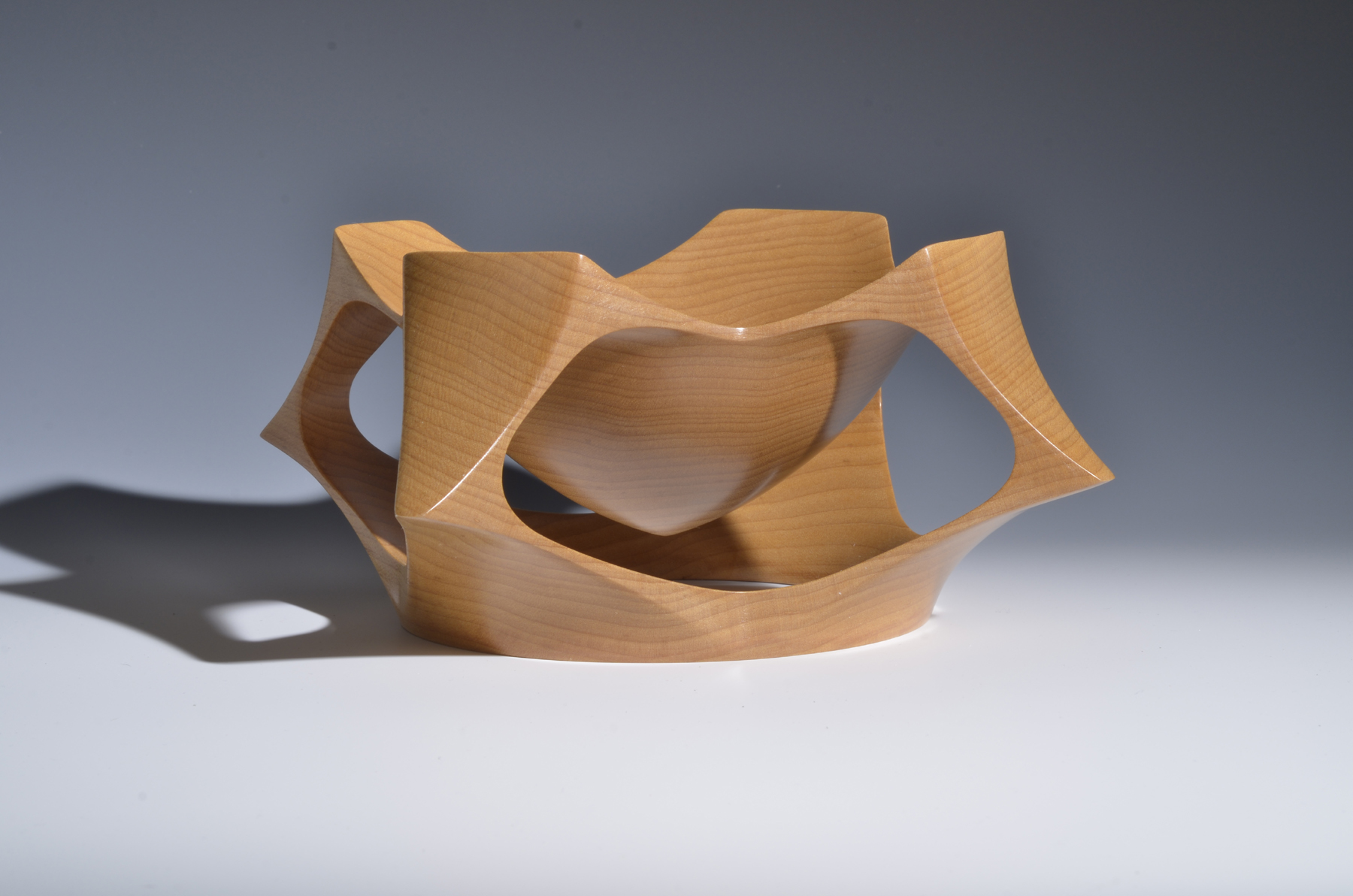 I began by using the corners to create wings. These became longer, eventually reaching the table top to become legs lifting the basin. Ultimately this has become what I call convolved forms after the mathematical operation of convolution where two functions are combined into one more complex function.