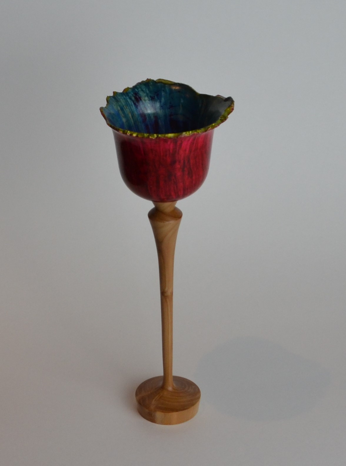 Instead of churning out lots of segmented bowls, open vessels, or something that shows my individual style (maybe I just haven’t discovered my individual style yet) I’m more of a serial woodturner. I’ll watch a chunk demo and then do a piece like that to practice new skills or see if I can do it. Well, that’s done, on to something new!