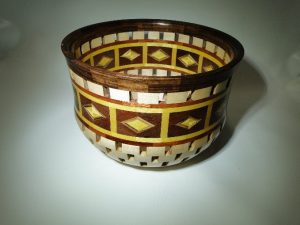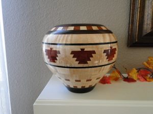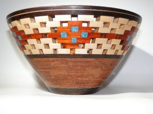 I started woodworking in High School where I turned my first bowl in shop class. I have always had an interest in working with wood. During my working life, I didn’t have much time to pursue my hobby but on occasion, I was able to do some home remodeling which kept my skills honed in using shop tools. Since then, I retired from the Insurance Industry where I worked first as a Safety Engineer in Fire Prevention, then as an Underwriter/Account Manager. Upon retirement, looking for something to pass the time, I returned to my passion for working with wood. I purchased my first major shop tool, a Shopsmith multitool which provided me with a host of variables with which to pursue my interest. The most useful variable was the ability to turn wood on the lathe. I became interested in Segmented woodturning more as a means to conserve wood. Instead of “hogging out” the center of a bowl as wasted wood chips, I learned to build bowls as a layered process by building up the outside walls, in the form of rings, leaving the center of the bowl open, thus saving all of the wood I would have wasted in hollowing out the center. I credit Malcolm Tibbetts Book and DVDs for teaching me the fundamentals of this craft. The added advantage to Segmenting allows the creative ability to build decorative designs into the bowls or vessels which allows one to create beautiful designs while allowing for one’s creativity. I reside in Brentwood, California with my wife where I also belong to the Delta Art Gallery and often show my work there.