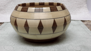 My first segmented turning was way back in high school wood shop. It was just another wood shop project and I wasn’t that excited about woodturning back then. I still have that project. I have always enjoyed woodworking but after high school, I went directly to college and after that is was 4 years in the Navy. Never had time for any kind of woodworking. I didn’t get back to woodworking or turning until after I purchased my house. I slowly started to purchase tools & machinery. Working full time, household projects, and being in the Navy Reserves, I have very limited shop (garage) time. After retiring from the Navy reserves I had more free weekends and started to spend more time in the shop. I purchased my first lathe (used) with the intent of making furniture legs. I had no plans to do any kind of segmenting until I saw a video on Youtube. I liked the concept and made my first segmented bowl. That got me hooked onto segmented woodturning. I have been making segmented pieces for about 4 years now but I also make other turnings. By profession, I am an Operations Manager at a manufacturing plant.