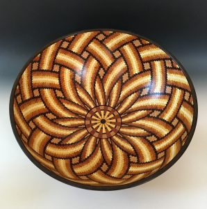 I live in Duluth Minnesota with my wife of 37 years, where I recently retired from a career as an Electrical Engineer in the Power industry. Then we also have a 34-year-old son who is a senior scientist for a pharmaceutical testing firm. I have been woodworking for more than half of my life then discovered segmented woodturning in 2010 and became hooked after reading Malcolm Tibbetts book. Since getting involved in segmenting I have been pushing the boundaries of Bowl-from-a-Board techniques, then both open and closed segmenting with my complex patterns.