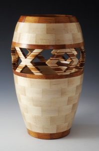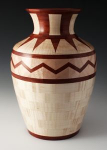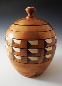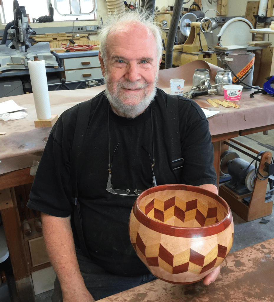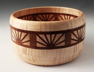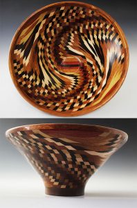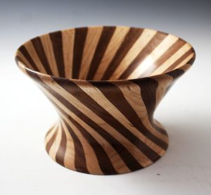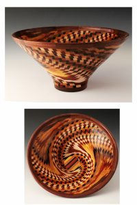 I live in Anaheim California. I started turning on an old ShopSmith in the early seventies, then when I retired in 1995 I found a part-time job at The Wood Workers Club as a turning instructor and shop monitor. At the same time, I started taking woodworking classes at Cerritos College the local community college. In 1999 when the Jet mini-lathe came on the market, I convinced the school to start a turning program which has been my “baby” ever since. We have had at least 2 sections of fundamental turning each semester since with 5 instructors added since. In 2002, I felt the need to expand the program to include a more advanced class. So, after a day spent with a friend who was doing segmenting, I started the Segmented Turning Class and have learned along with the students ever since. Lately in addition to teaching, I have been making Beads of Courage bowls.