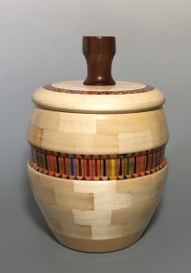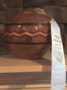 I have been involved with woodworking all my life as my dad was always building something. I learned a great deal from him by watching and helping. My interest in woodturning started when someone gave me a pen that he had made and I said that I have to learn how to do that. We moved to Minnesota in 2005 and that when I purchased my first lathe. I was self-taught until I joined the MWA and it provided opportunities for formal training and my skills improved greatly. I became interested in segmented turning after seeing some amazing pieces at the monthly MWA meetings. My first segmented piece was a vessel that I entered into the 2013 Minnesota State Fair and received a 3rd place ribbon. In 2014 I was lucky enough to take a class with Malcolm Tibbetts at the Marc Adams School of Woodworking. What a great week that was. I enter a piece into the fair every year and some years I win and some years I don’t. The competition at the fair is pretty stiff. One of the items I enjoy making and selling are stave constructed travel mugs. I taught a hands-on class to my club last fall and will be doing another class in March. In June, I will be doing a demo for the club.