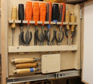 This winter I have concentrated to build my very small hobby room tidy and get all my stuff a place to store. Made many vertical drawers as upper cabinets. I am a great fan of John Heisz and follow this master and youtuber every morning. I have also sent some of my doings to his Forum.