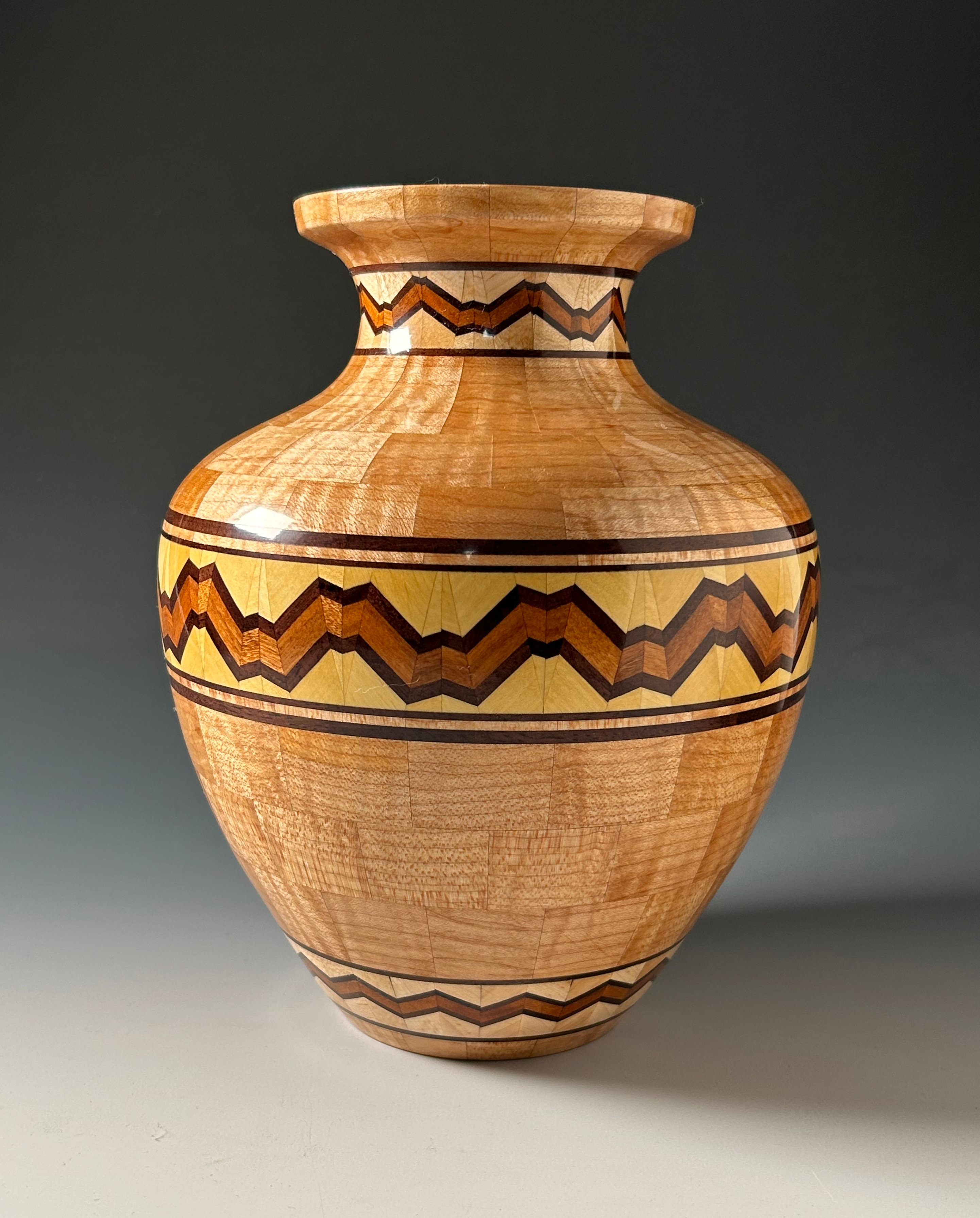 Working with wood has been a lifelong pursuit which started at a very young age when my Dad, who owned a custom cabinet business, taught me to appreciate the beauty and flexibility of wood as a design medium while I learned the fundamentals of cabinet construction and safely using woodworking tools. This interest in woodworking continued into adulthood with a focus on furniture design as a part time passion while I paid the bills as an engineering manager. After over 30 years of making furniture, I discovered a new avenue for artistic expression through woodturning. Combining my interest in precision woodworking with my analytical skills from engineering, and my newly found interest in woodturning has created a perfect storm that resulted in a fascination with segmented design. In recent years, my interest in natural forms and textures is transforming my design approach by combining classical segmented construction with carving, pyrography, and painting to create unique organic forms. Sharing this interest with others brings additional rewards.