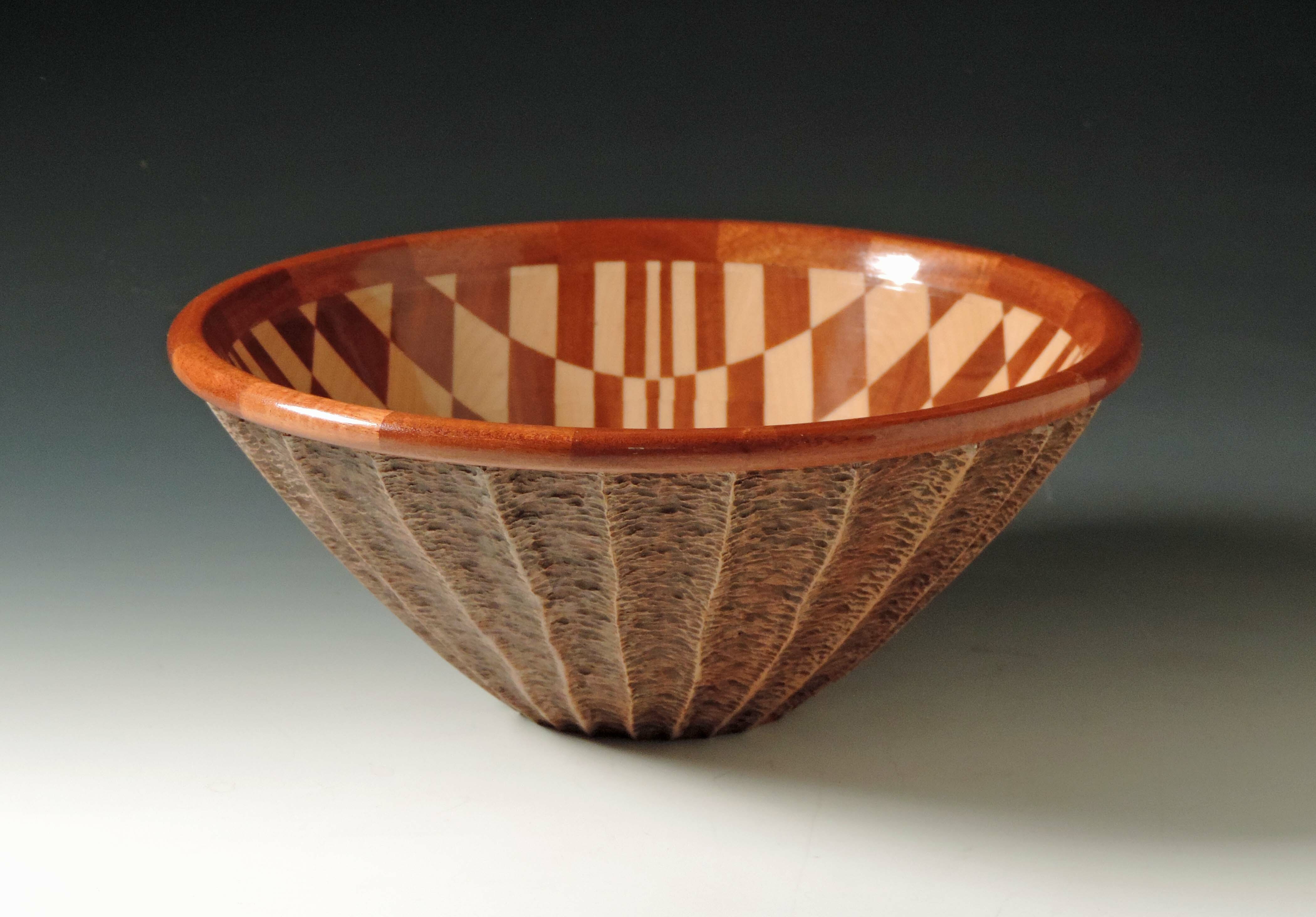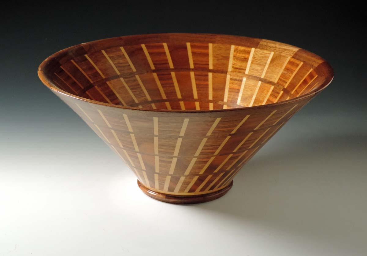 Bowl from a board basics to fascinating - The bowl-from-a board (BFB) technique has been around for centuries and has been a very simple and cost-effective technique to make a functional bowl. During the last 30 years, this concept has been expanded in many directions to create fascinating works of art. This rotation will cover the basics steps to layout and assemble this style of bowl. We will then discuss through photos and video clips, all the process to make more artistic designs. Finally, the rotation will proceed to survey the many approaches used by contemporary artists to add artistic interest and complexity to the technique. You will leave inspired to give this technique a try.